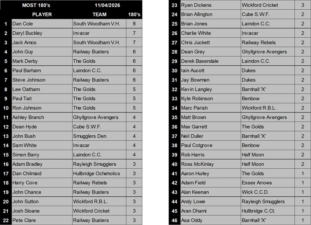 WICKFORD & DISTRICT DARTS LEAGUE