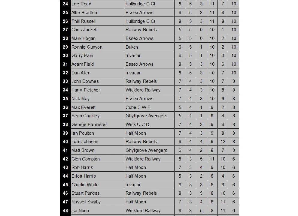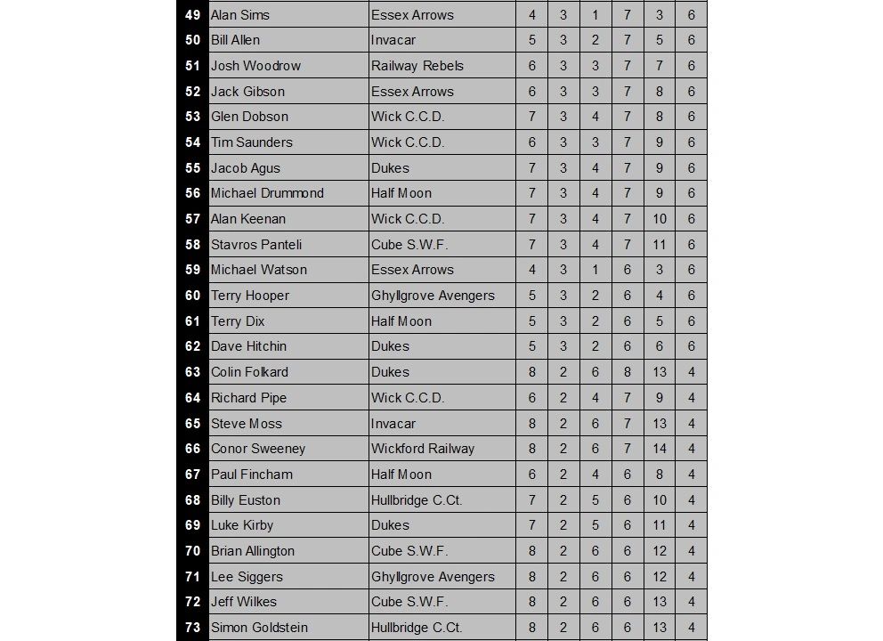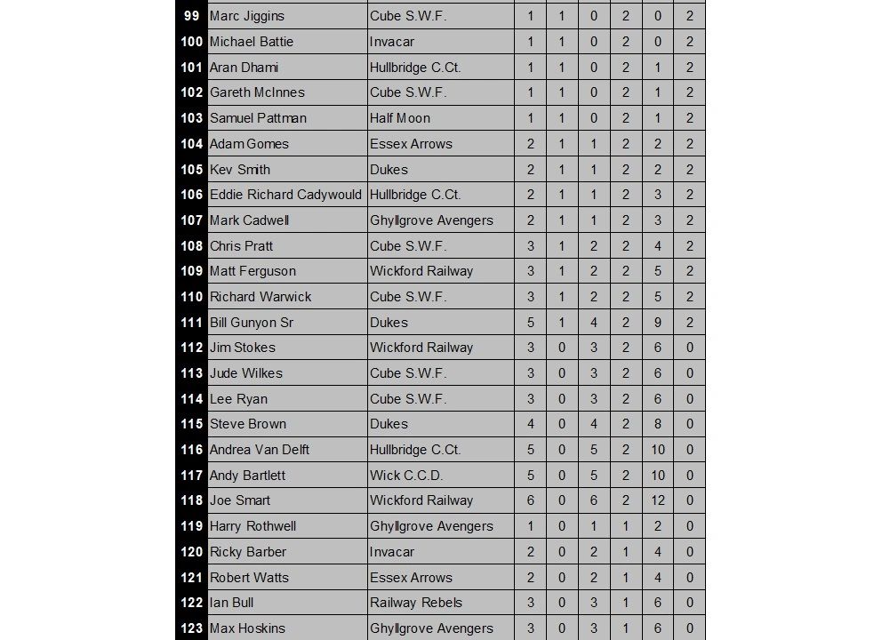 WICKFORD & DISTRICT DARTS LEAGUE