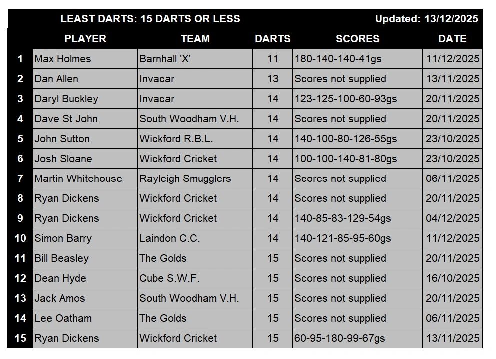 LEAST DARTS - WINTER 2025/26