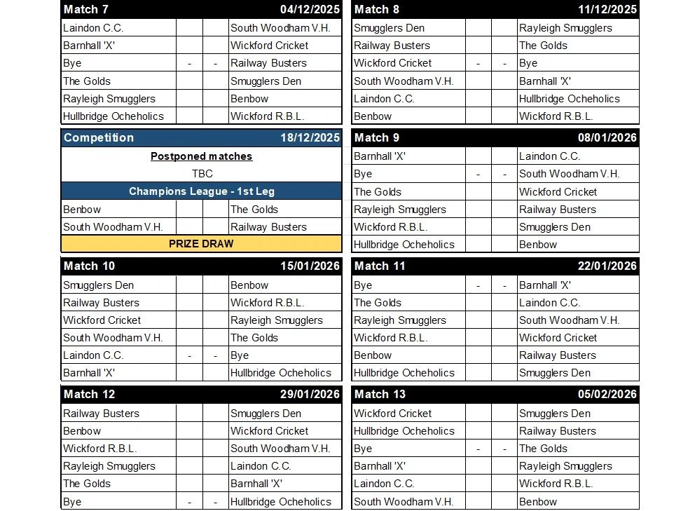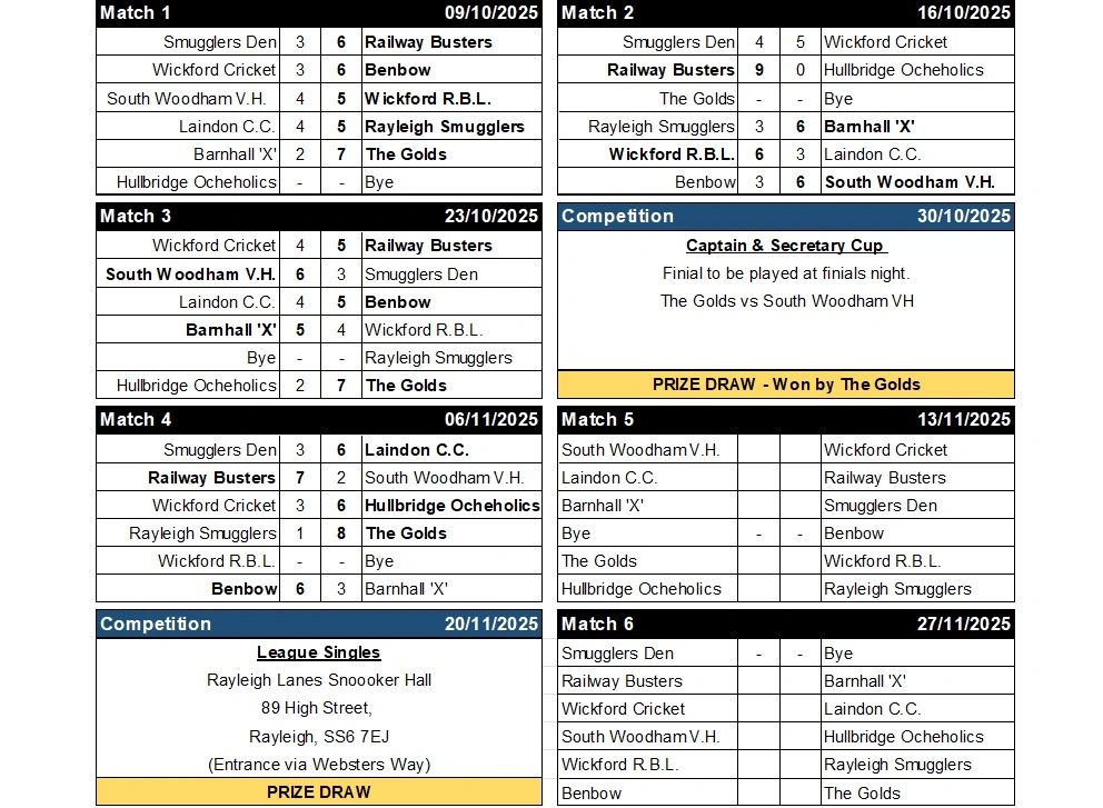 WINTER LEAGUE DIVISION 1 FIXTURES & RESULTS