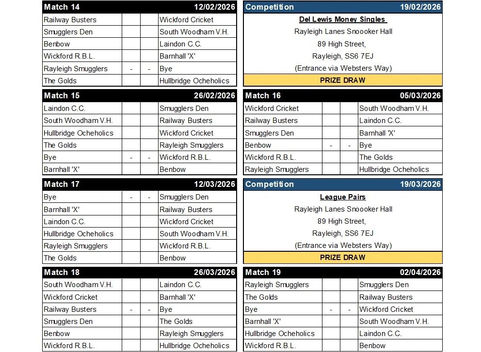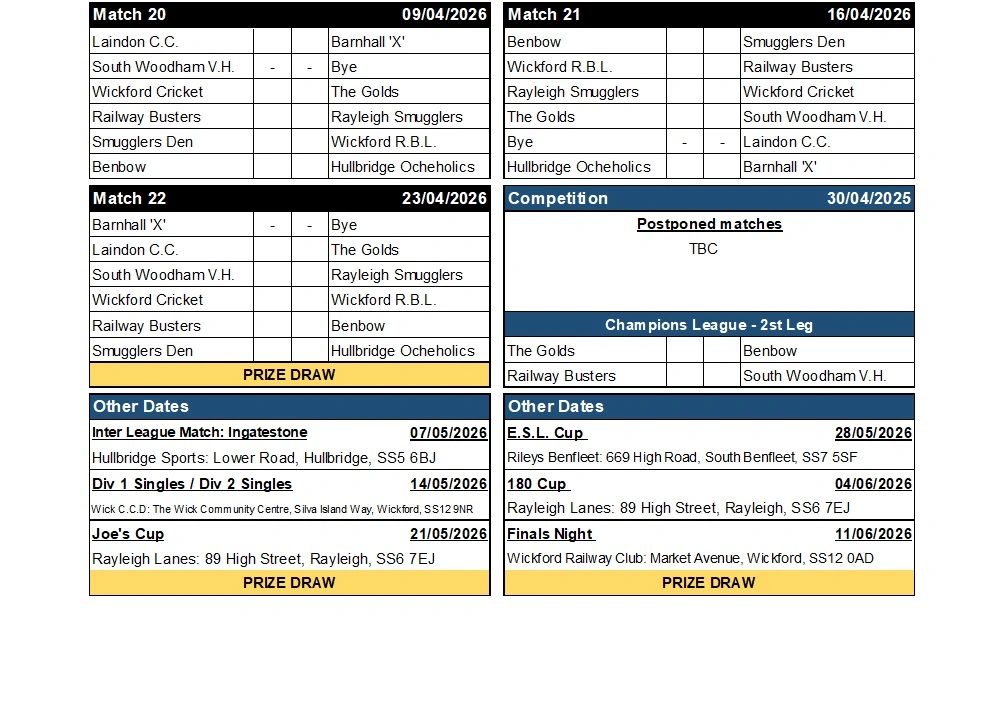 WICKFORD & DISTRICT DARTS LEAGUE